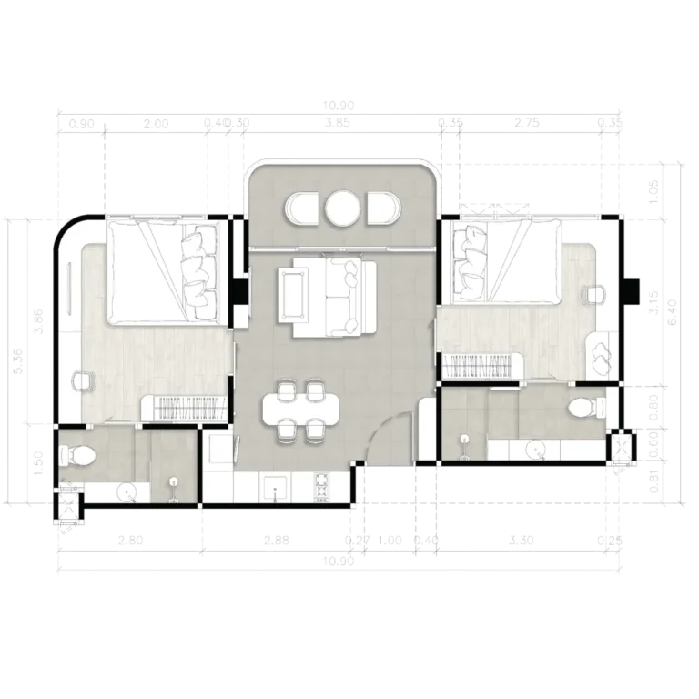 Enhance the communal space within an environment that promotes a lifestyle, creating an atmosphere akin to residing in a spacious home